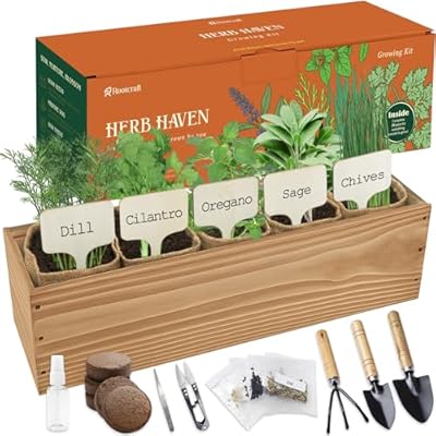 All-in-One Package: Our kit includes 5 of the widely loved organic, non-GMO herb seeds—Dill, Cilantro, Oregano, Sage, Chives. The set also comes with 5 burlap bags, 5 coconut soil discs, 5 plant markers, 3 gardening tools, 1 pruning scissors, 1 spray bottle, and an wooden box | Elegant Wooden Box: The product comes with a crafted wooden box that not only provides a stable growing environment for your herbs but also solves the issue of balance when plants grow taller and bags may become unstable.