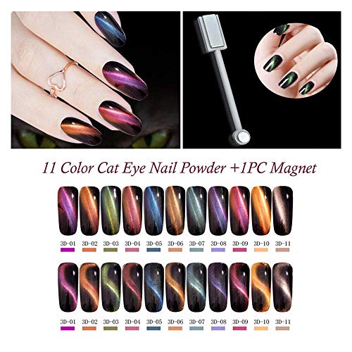 AZEWO US FAST SHIPMENT Cat Eye Symphony Acrylic Nail Powder Neon Flash Mirror Art And Magnet Rod Powder, 11 Colors Design – UV Gel Color Decoration (Multicolor)- Amazon.com