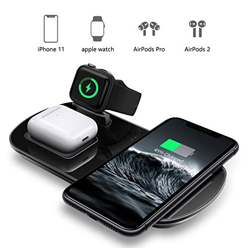Wireless Charger, 3 in 1 Wireless Charging Pad with Magnetic Charger for Apple Watch 5/4/3/2/1, Fast Charging Station Compatible with iPhone 11/XR/XS/X/8P/8/SE 2020, Samsung S20/Note 10/S9, AirPods- Amazon.com