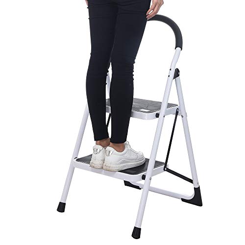 Foldbale 2/3 Step Ladder Lightweight Steel Step Stool Sturdy Anti-Slip Wide Platform with PVC Handgrip Easy-to-Carry Ladder Fully Assembled Multiuse Ladder-Hold Up to 330lbs (2 Step, White)- Amazon.com