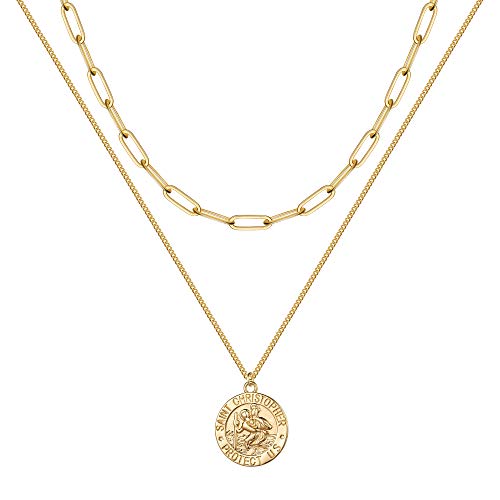 IEFSHINY Dainty Layered Necklaces for Women,14K Gold Plated Multilayer Bar Disc Necklace Adjustable Layering Dainty Pendant Necklaces Set for Women- Amazon.com