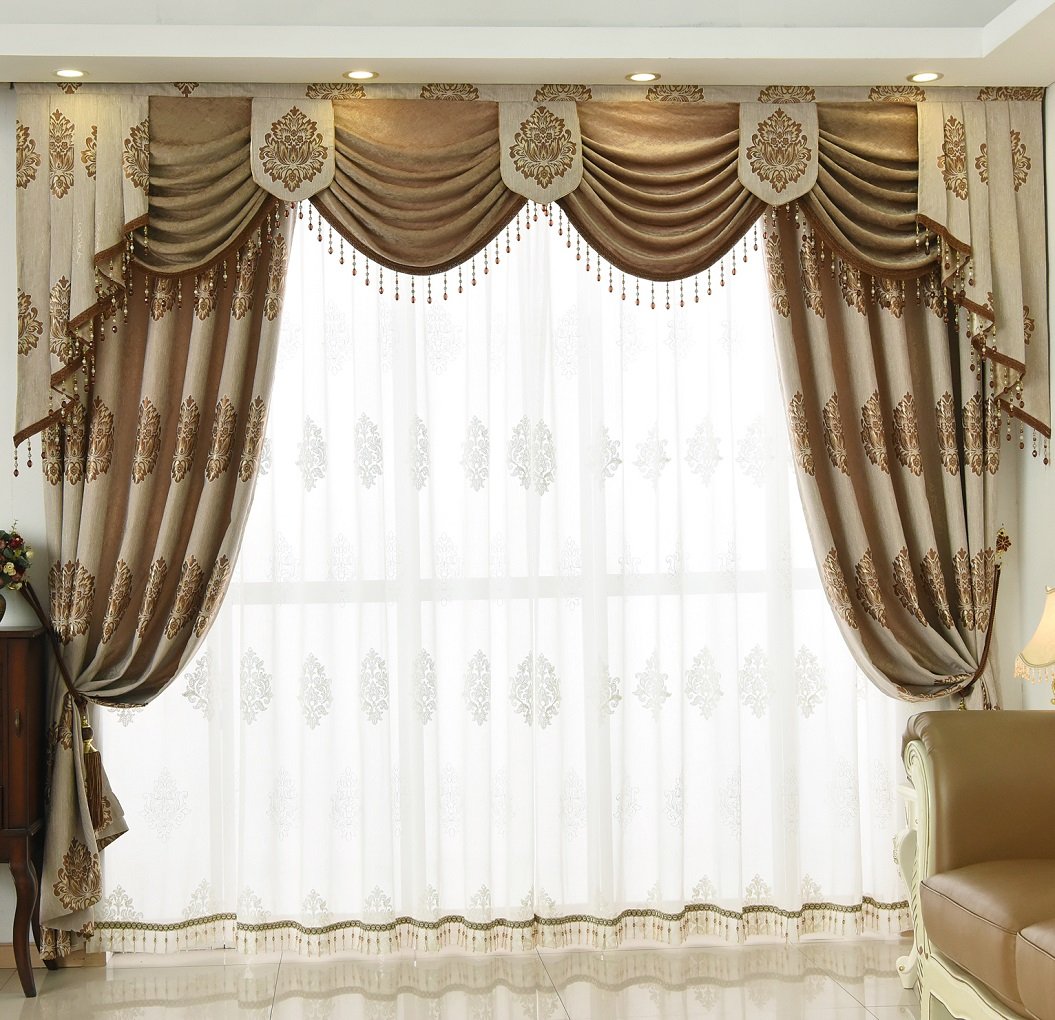 Brown Living Room Curtains with Valances, Delicate Damask Jacquard Drapes, Light Blocking Curtains with Beaded Tassel Swag,Custom Made Available- Amazon.com