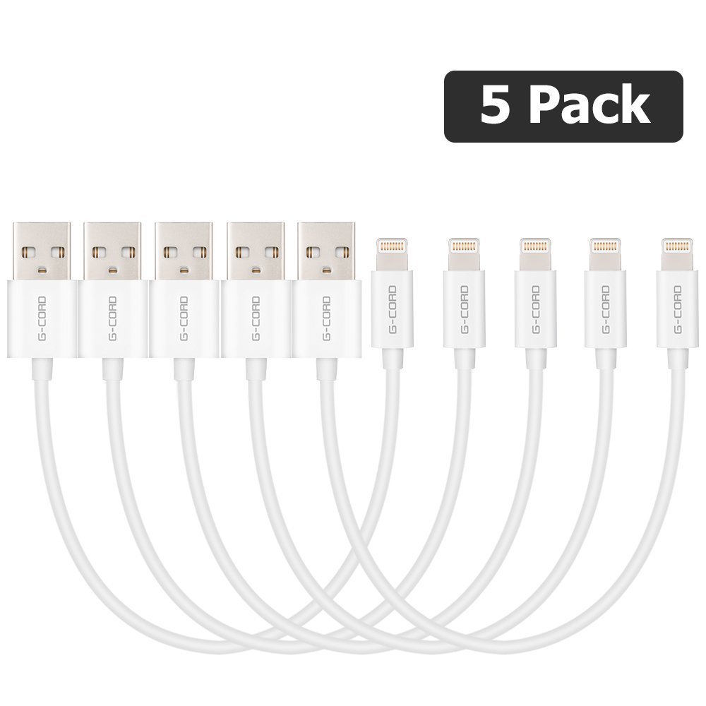 G-Cord Apple MFI Certified Short Lightning to USB Charging and Sync Cable (5 Pack, 7 Inch)- Amazon.com