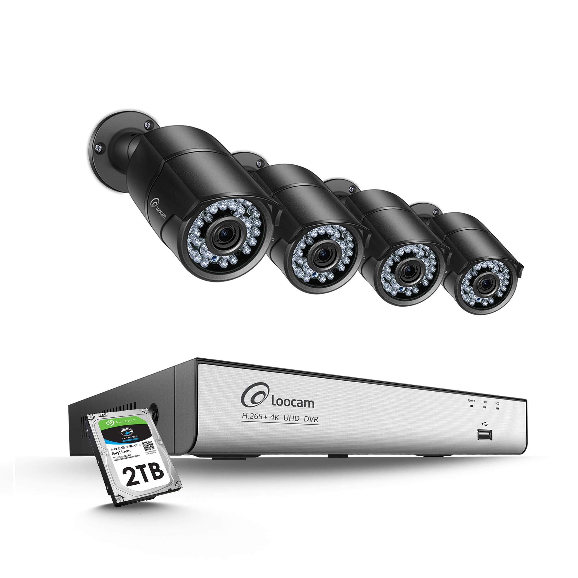 Loocam 4K UHD 8 Channel Security Camera System, 8.0MP H.265+ UHD 8CH Surveillance DVR and 4 x 4K UHD Bullet Cameras (3840 x 2160), 150ft Night Vision, Weatherproof CCTV Camera with 36pcs IR LEDs & 2TB- Amazon.com