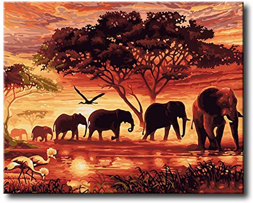 DIY Paint by Numbers for Adults Kids, Canvas Acrylic African Elephant Painting Kits Pictures Drawing with 3Pcs Paintbrushes 16×20 inches – No Frame- Amazon.com