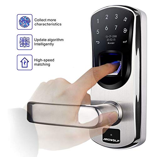 Fingerprint Door Lock, Ardwolf A60 Biometric Keyless Entry Door Locks, Smart Electronic Digital Touchscreen Lever Lock with Keypads Backup Key for Home Office, 304 Stainless Steel (Left-Handle)- Amazon.com