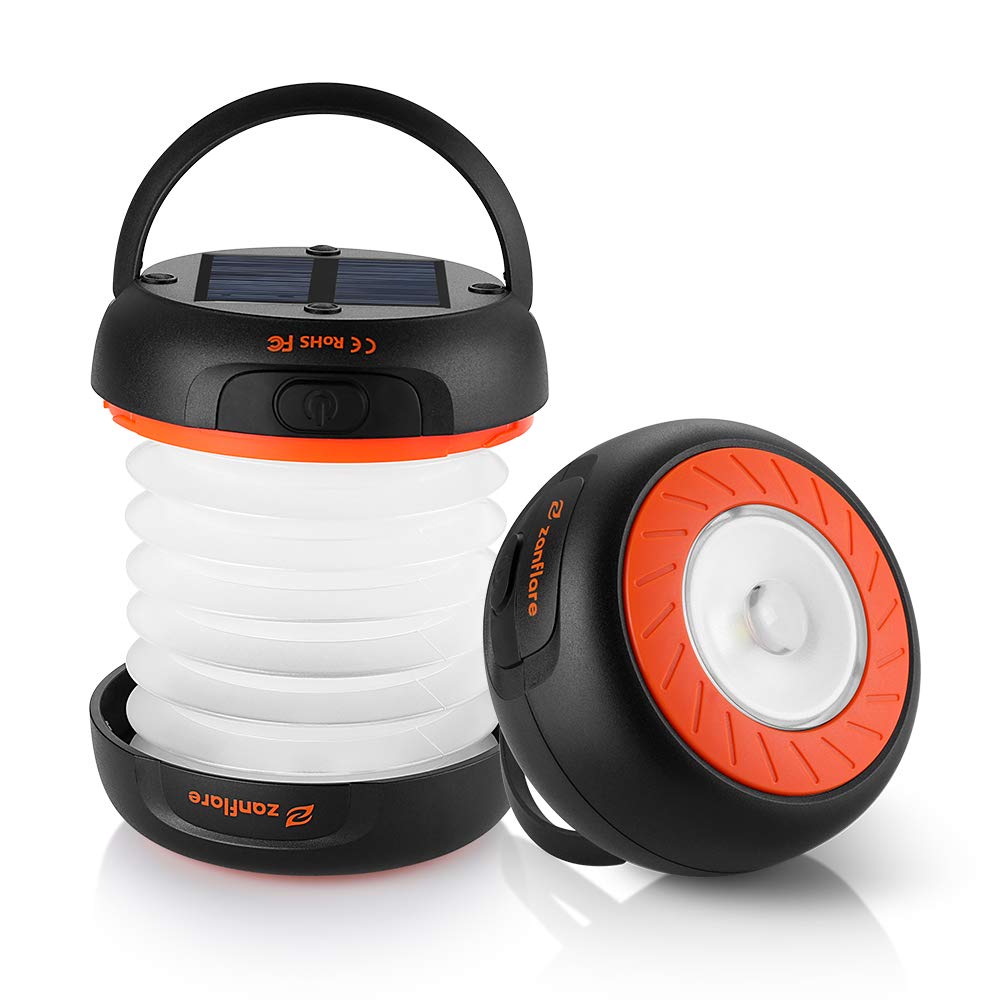 Zanflare LED Camping Lantern, Solar Light Rechargeable Battery (Powered by Solar Panel and USB Charging) Collapsible Flashlight for Outdoor Hiking Tent (Emergency Charger for Phone, Water-Resistant)- Amazon.com
