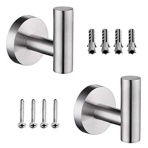 YeHeng Heavy Duty Wall Hooks Bathroom Towel Hooks Hangers SUS 304 Stainless Steel Coat Hook Round Clothes Waterproof Towel Coat Robe Hook Wall Mount for Bathroom Kitchen Garage – 2 Pack- Amazon.com