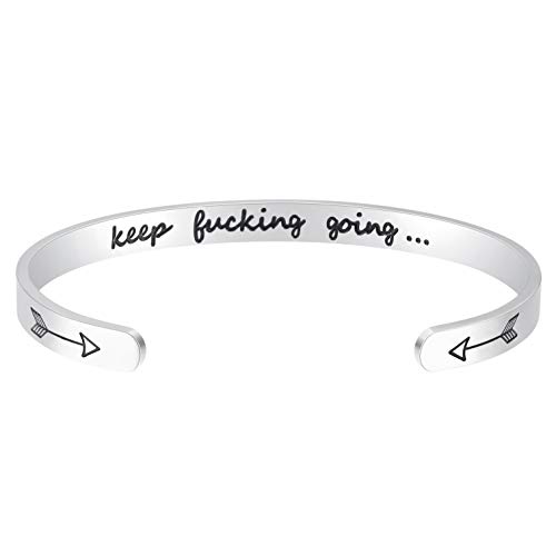 Fesciory Inspirational Bracelets for Women,Stainless Steel Engraved Personalized Positive Mantra Quote Keep Going Cuff Bangle College Graduation for Her- Amazon.com