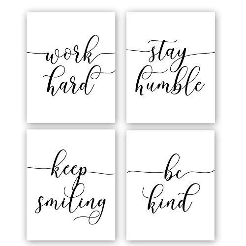 HPNIUB Unframed Inspirational Quote Art Painting,Work Hard,Be Kind,Stay Humble,Keep Smiling Art Print Set of 4 (12”X16” Motivational Phrases Wall Art for Office or Living Room Home Decor,No Frame- Amazon.com