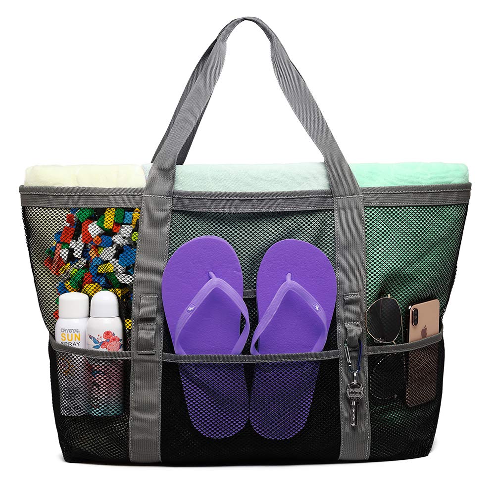 Beach Bag, Packism 8 Pockets Mesh Beach Bag Large Capacity Beach Tote Lightweight Beach Toy Bag Odor-Free Beach Tote for Women Picnic Travel, Grey- Amazon.com