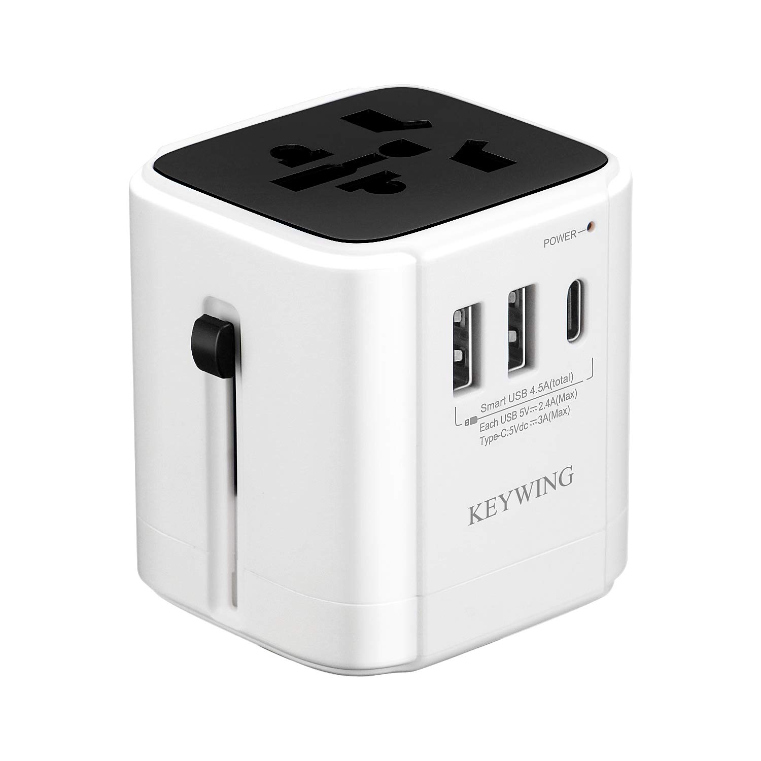 Universal Travel Adapter International Power Adapter All in One Worldwide Travel Plug Adapter 2 USB 1 Type C Wall Charger AC Plug Converter Europe USA UK Asia Cell Phone Laptop Tablet (White)- Amazon.com