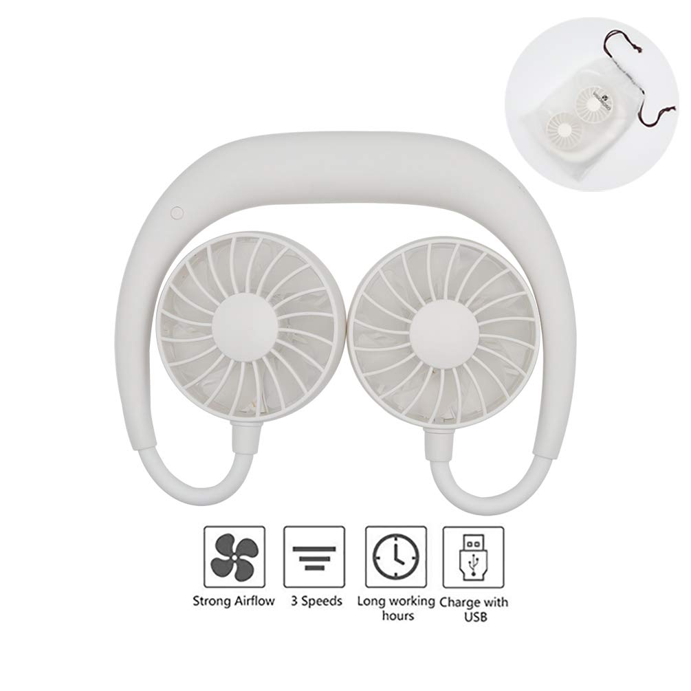 VIGOROSO Hand Free Personal Fan Necklace USB Rechargeable Mini Fan with 3 Speed 7 Plastic Blades Adjustable Dual Wind Head for Sports Traveling Outdoor Office Room-White- Amazon.com