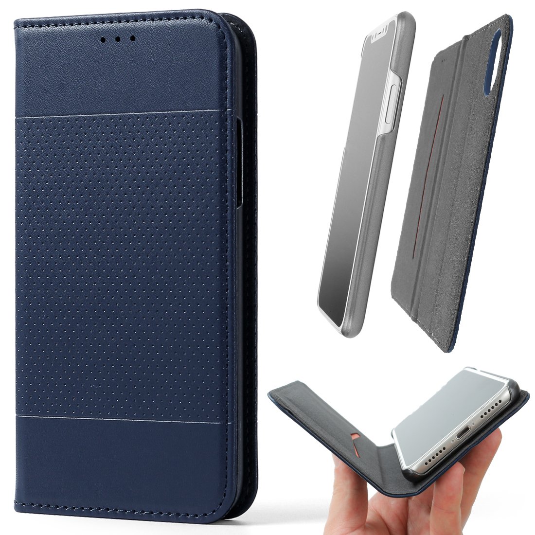 iPhone X Case,Leather Case Wallet Folio Case with Credit Card Slot with Tempered Glass Screen Protector for Woman and Men iPhone 10 Edition 5’8 (Dark Blue)- Amazon.com