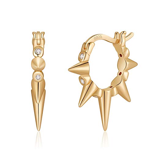 Gold Huggie Hoop Earrings for Women, Hypoallergenic S925 Sterling Silver Post 14K Gold Plated Bee Drop Spike Skull Dangle Small CZ Triangle Huggie Hoop Earrings Jewelry Gifts for Women- Amazon.com