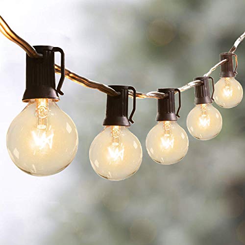Outdoor String Lights, 2 Pack 25Ft G40 Globe String Lights with 52 Clear Bulbs (2 Spare), Waterproof Patio String Lights Connectable Hanging Lights Decorative Backyard Porch Garden, E12 Base, Black- Amazon.com