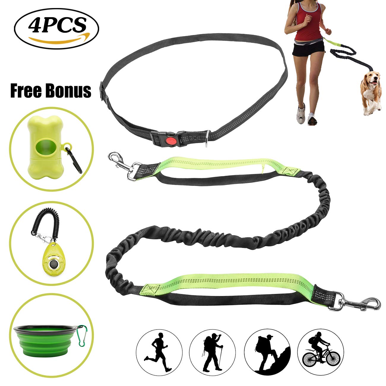 Impoosy Retractable Hands Free Dog Leash for Small Medium Large Dogs Adjustable Waist Belt Professional Harness with Reflective Stitches for Training, Walking, Jogging and Running Your Pet- Amazon.com