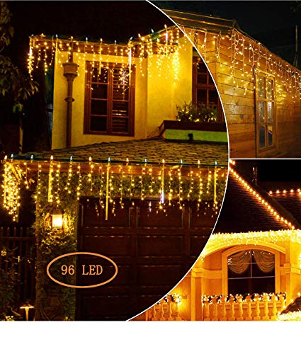 Hezbjiti LED Icicle Lights,96 LED 18 Drops 9 FT 8 Modes Fairy String Lights Plug in Extendable Curtain Light String Christmas Lights for Bedroom Patio Yard Garden Wedding Party (Warm White)- Amazon.com