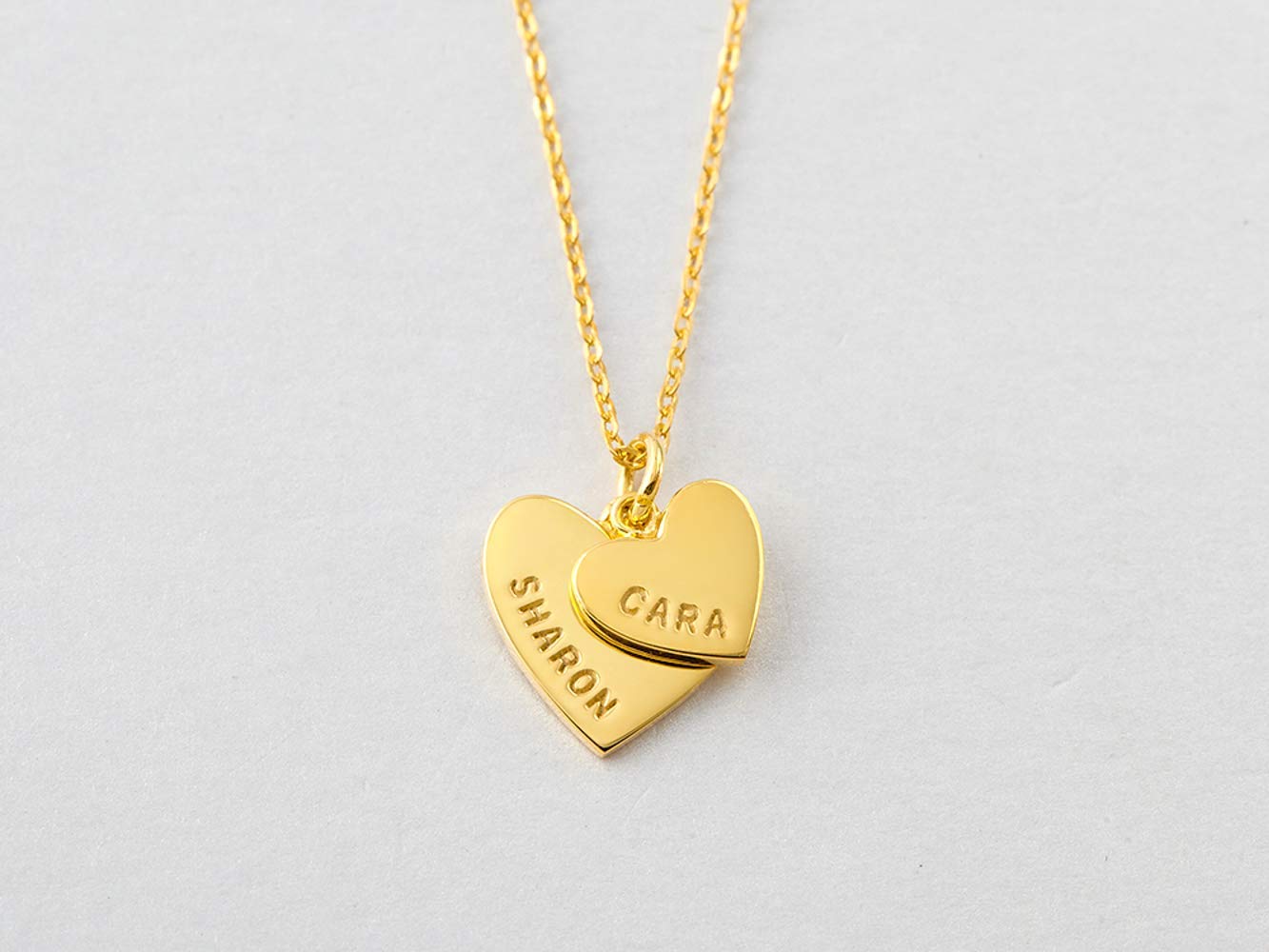 Personalized Double Heart Pendant Necklace with 2 Engraved Names or Any Text 925 Sterling Silver/Copper- Amazon.com