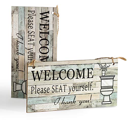 DOCMON Bathroom Decor Wall Hanging Wood Sign (2 Pack)- Welcome Please Seat Yourself – Farmhouse Rustic Wall Decor Art Sign Size 7.9″ x 3.9″ (Blue-Black)- Amazon.com