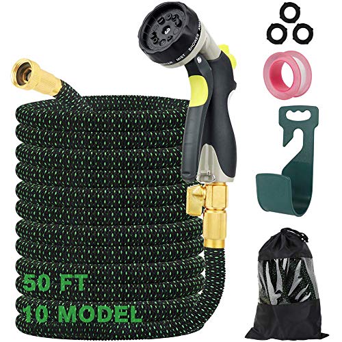 AerWo 50ft Expandable Garden Hose Water Hose with 10 Function Spray Nozzle and Durable 4 Layers Latex 3/4” Solid Brass Fittings-Strength 3750D Durable Flexible Watering Hoses for Garden Car Washing- Amazon.com