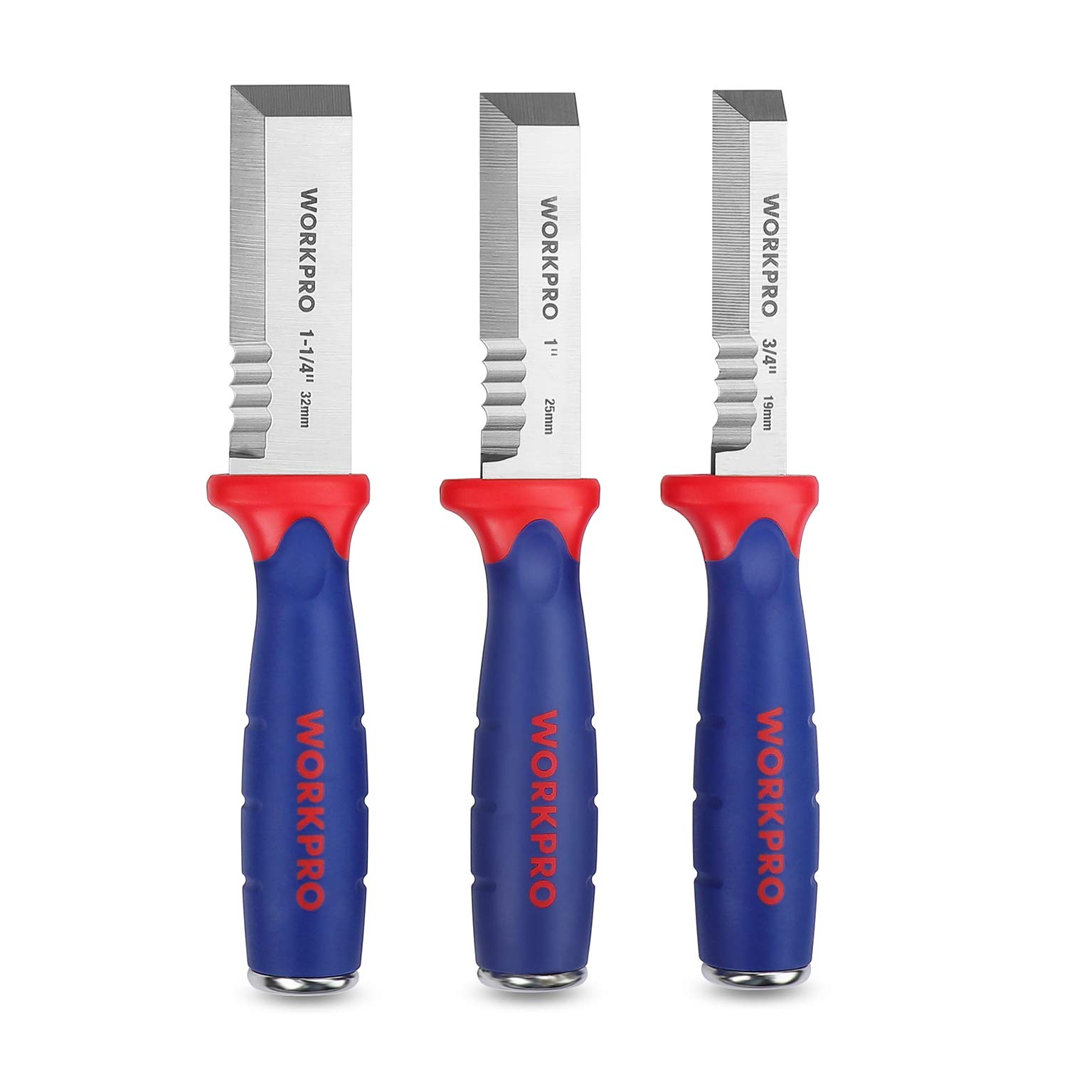 WORKPRO 3-piece Wood Chisels Set, Side Strike Edge Chisel Knife, Cr-V Construction for Woodworking, Carving, Bi-Material Soft Grip with Hammer End- Amazon.com