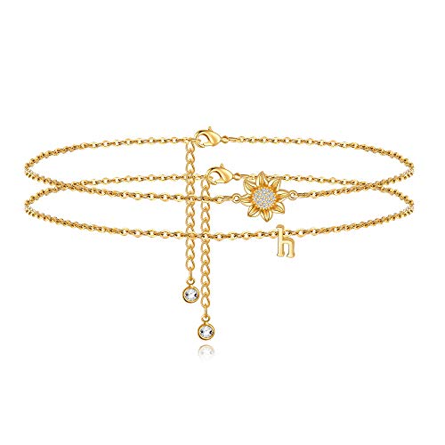 MONOZO Ankle Bracelets for Women Initial Anklet, 14k Gold Filled Layered Sunflower Ankle Bracelets Cute Boho Anklets with Initial Letter Ankle Bracelets for Teen Girls Jewelry Gifts- Amazon.com