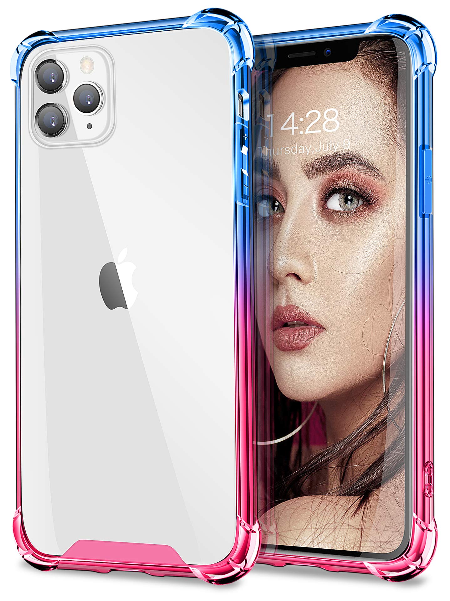 iPhone 11 Pro Max Case, DAUPIN Clear iPhone 11 Pro Max Phone Case Cover Gradient Shock Absorption Soft TPU Bumper PC Hard Back Protective Anti Scratch Case for Apple iPhone 11 Pro Max(Blue Pink)- Amazon.com
