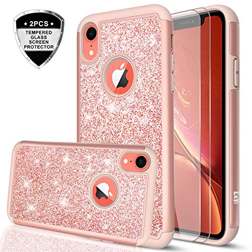 iPhone XR Case with Tempered Glass Screen Protector [2 Pack] for Girls Women, LeYi Glitter Bling Sparkle Cute Coral Protective Phone Cover Cases for Apple iPhone XR 10 10XR (6.1″) TP Rose Gold- Amazon.com