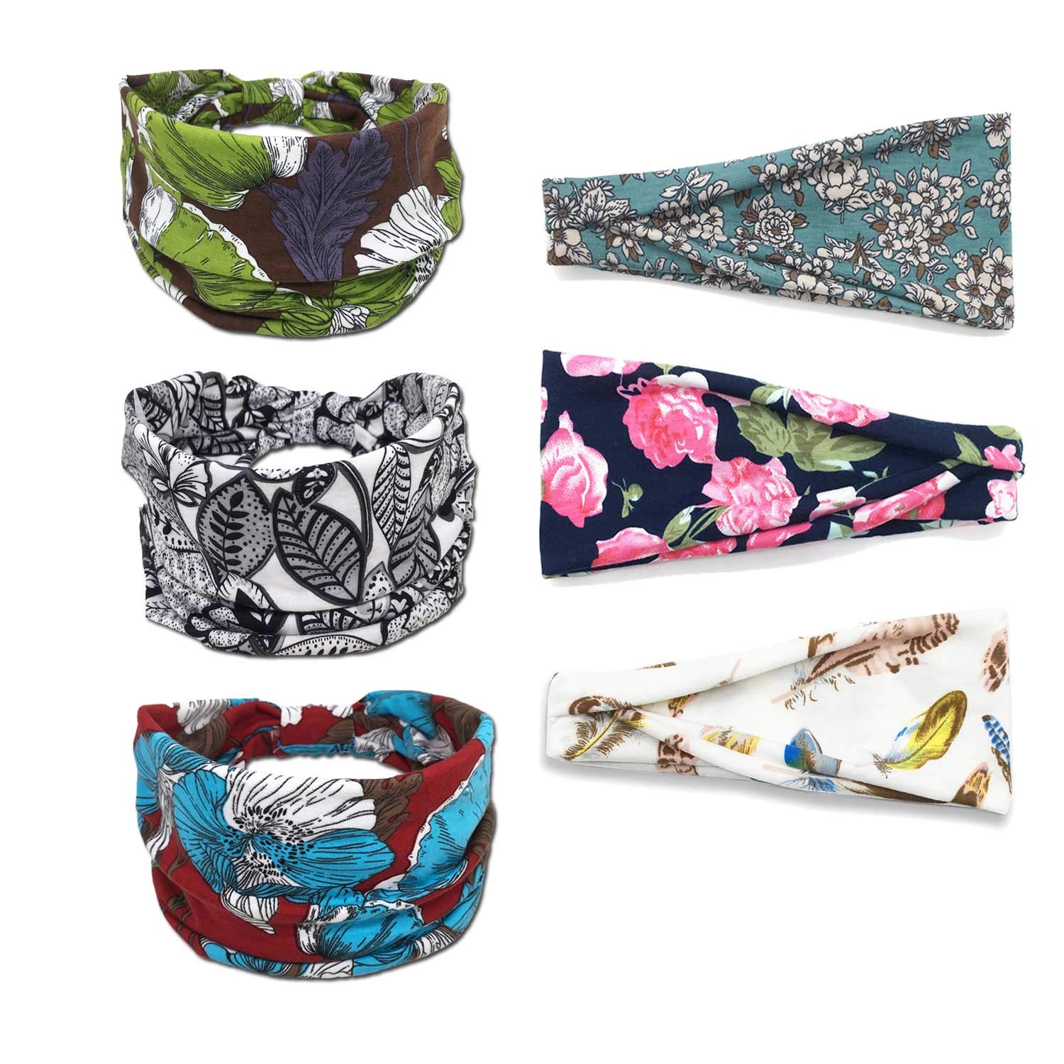 Headbands for Women Yoga Hair Bands Turban Head wraps, 6 Pack Wide Boho Floral Stretchy Soft Breathable Moisture Wicking Headwraps for Workout, Running, Dance & More- Amazon.com