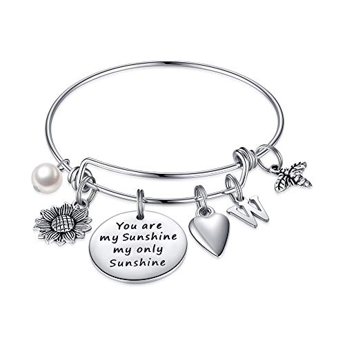 MONOZO Sunflower Bracelet for Women, You are My Sunshine Sunflower Charm Bracelet Stainless Steel Initial Expandable Bangle Bracelet Sunflower Jewelry Gifts for Women Her- Amazon.com