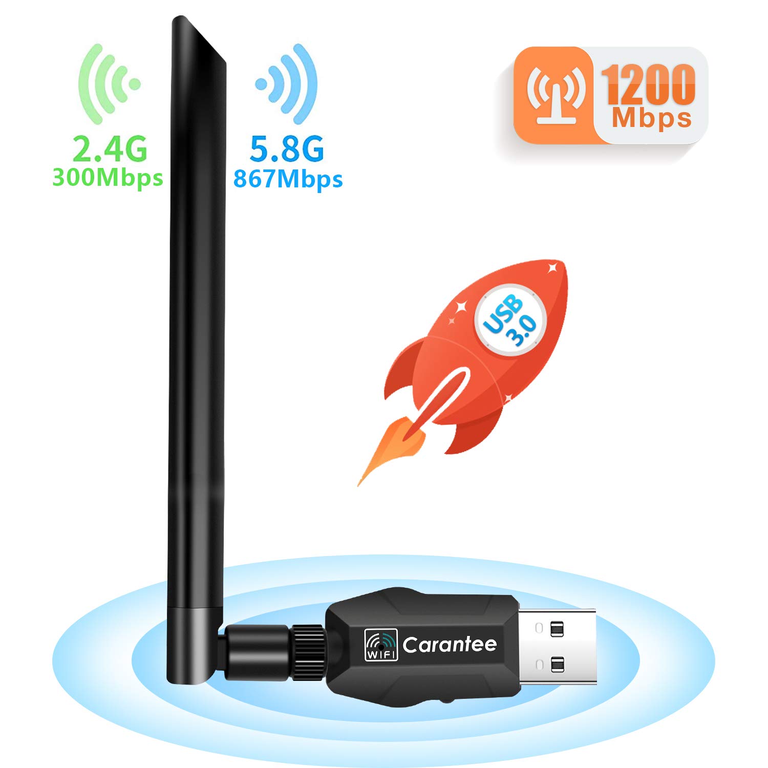 [2019 Newest] Carantee 3.0 USB WiFi Adapter 1200Mbps, Wireless Network WiFi Dongle for PC/Desktop/Laptop with 5dBi Dual Band Antenna, Support WinXP/7/8/10/vista, Mac10.4-10.14, Linux- Amazon.com