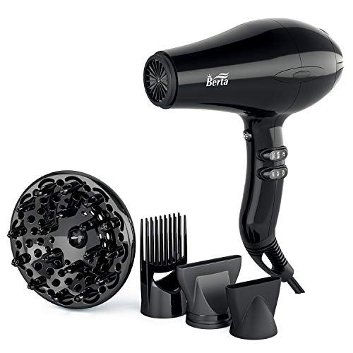 Professional Hair Dryer, 1875W Tourmaline Ceramic Blow Dryer with Diffuser & Comb & Two Concentrators, Negative Ionic Blower Fast Drying with 2 Speed and 3 Heat Setting Black- Amazon.com