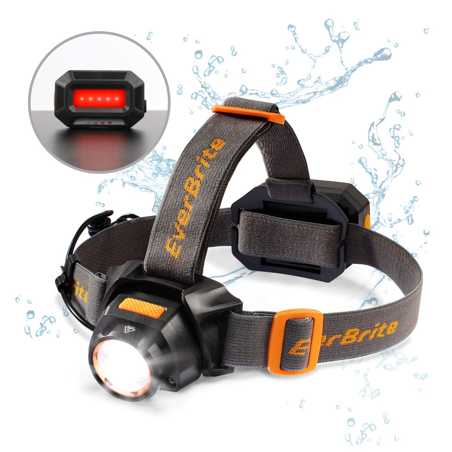 EverBrite Rechargeable Headlamp, 300 Lumen Zoomable Super Bright CREE Headlight with White & Red LEDs and Detachable White & Red Taillight, Water Resistant IPX4, 10 Lighting Modes Head Torch- Amazon.com