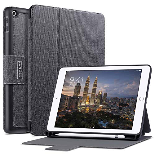 Amber & Ash iPad Folio Case – Protective- Slim Folding – Multi Angle Stand Cover with Smart Auto Sleep/Wake and Apple Pencil Holder – Fits 9.7 inch iPad [Black]- Amazon.com