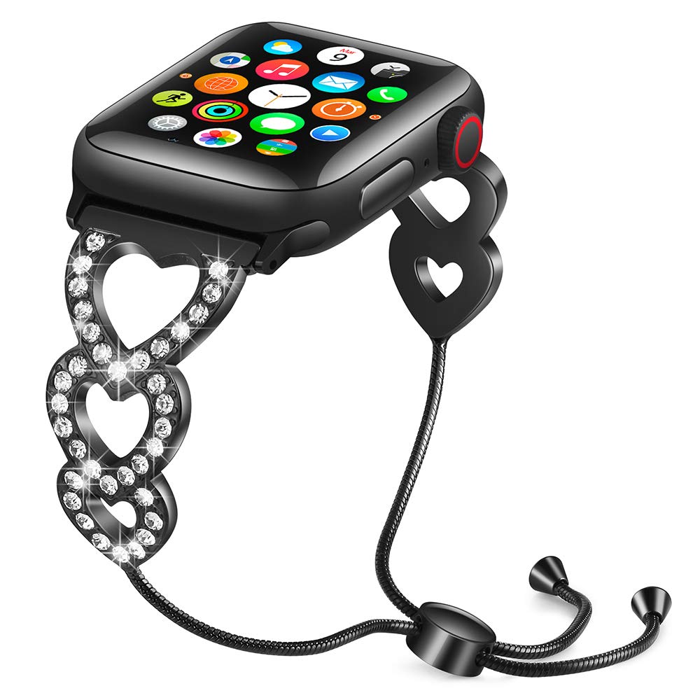 KARBYE Bling Bracelet Compatible for Apple Watch Band 38mm 40mm Women Black, Iwatch Bands 38mm 40mm Womens, Stainless Steel Metal Jewelry Bangle Cuff Wristband for Iwatch Series 4/3/2/1 Band (Black)- Amazon.com