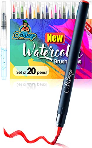 20 Watercolor Brush Pens Soft Flexible Tip – Watercolor Paint Markers for Adult Coloring Books, Painting, Drawing, Coloring, Non Toxic Watercolor Paint, Set of 20 Watercolor Pens by C&Berg Model 2019- Amazon.com