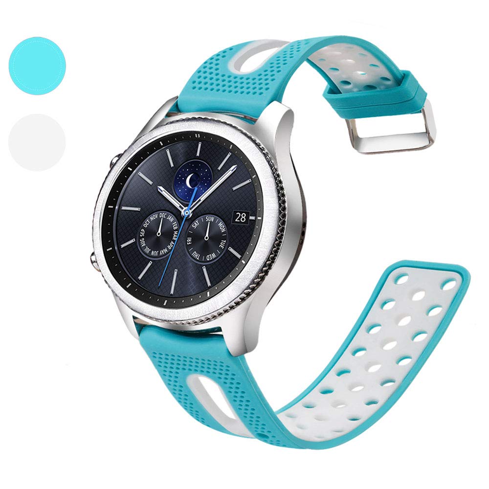 20mm Watch Band Nigaee Soft Silicone Replacement Bands Quick Release Sport Watch Straps with Breathable Holes for Samsung Galaxy Smartwatch (42mm)/Galaxy Watch Active Bands Men Women,Blue&White- Amazon.com