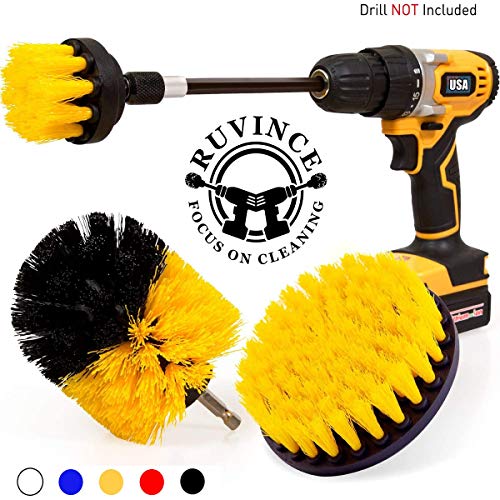 Drill Brush Power Scrubber Drill Brush Attachment 4 Set with Extend Long Attachment Suitable for Clean for Grout, Tiles, Sinks, Bathtub, Bathroom, Kitchen & Auto(Yellow)- Amazon.com