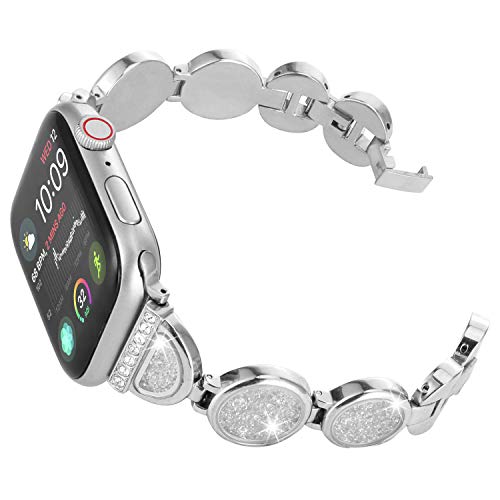 Fohuas Silver stianless Steel Band Compatible for Apple Watch 38mm 40mm Series 5 4 3 2 1, Adjustable Stainless Steel iWatch Bracelet Fashion Bling Rhinestone Wristband Strap for Apple Watch,Silver- Amazon.com