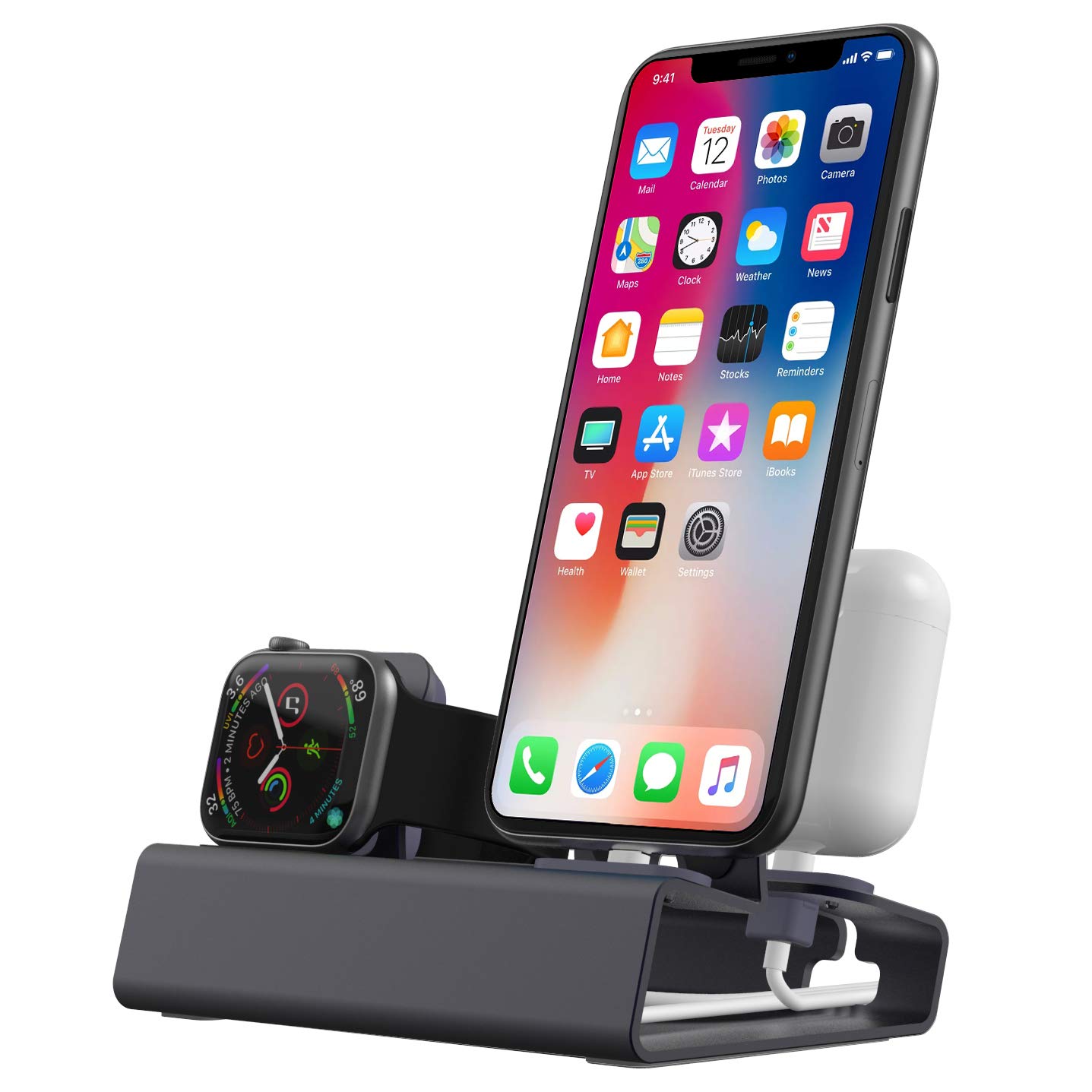 CQTECH Compatible with iPhone Apple Watch Charging Station for Apple Products, 3 in 1 Aluminum Charging Stand Docking Holder for Apple Watch Series 5/4/3/2/1 & iPhone Airpods – No Charger (Gray)- Amazon.com