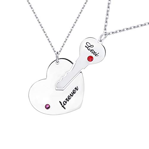 Customized Couples Necklace Stainless Steel Personalized Key Heart Puzzle Necklace Set with Birthstones – Custom Key to My Heart Necklace Made with Any Name- Amazon.com