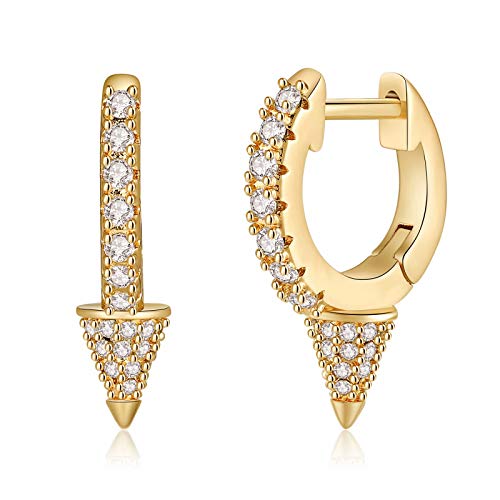 S925 Sterling Silver Post Huggie Earrings, 14K Gold Plated Dainty Dangle Drop Earring Small Hypoallergenic CZ Heart Three Spikes Balls Snake Evil Eye Pineapple Earrings for Women Jewelry- Amazon.com