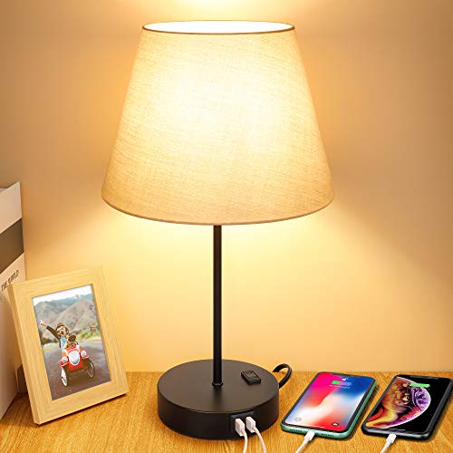 Touch Control Bedside Table Lamp, 3 Way Dimmable Modern Nightstand Lamps with Dual USB Charging Ports & AC Outlet, Grey Fabric Shade Desk Reading Lamp for Bedroom Living Room, 6W LED Bulb Included- Amazon.com