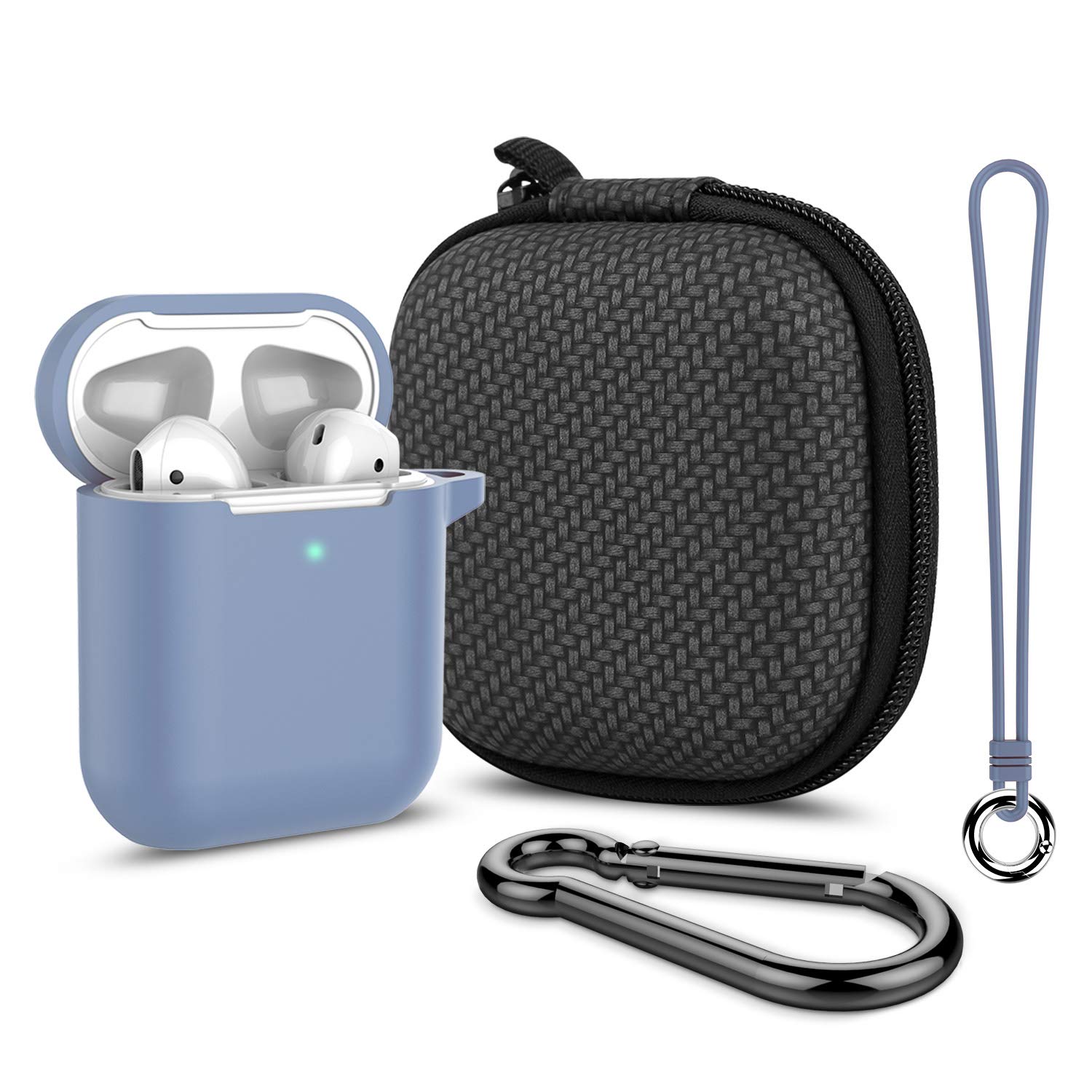 Airpods Case, Music tracker Thicken Protective Airpods 2 Cover Soft Silicone Earbuds Case [Front LED Visible] with Carabiner/Anti-Lost Lanyard/EVA Storage Bag for Apple Airpods Gen 2 (Greyish Blue)- Amazon.com