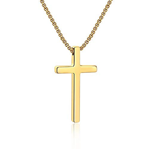 IEFSHINY Cross Necklace for Men, Stainless Steel Cross Pendant Necklaces for Men Pendant Chain 16-30 Inches Chain Gold Silver Black Cross Necklace- Amazon.com