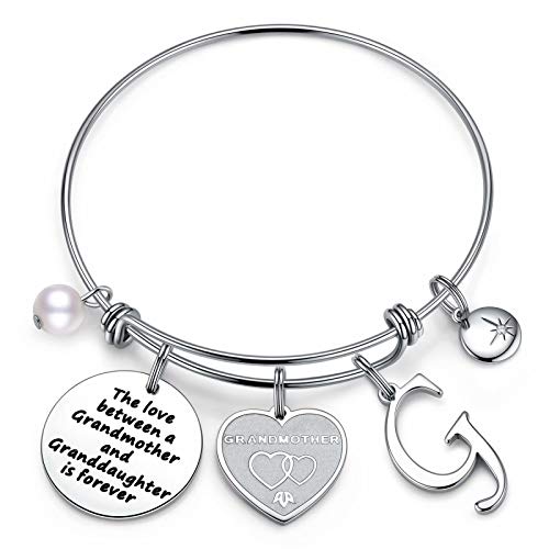 Anoup Grandma Gifts Bracelet from Granddaughter, The Love Between Grandma and Granddaughter is Forever Initial Charm Bracelet Grandma Bracelet Jewelry Christmas Birthday Gifts for Grandmother- Amazon.com