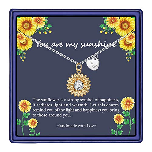 Initial Sunflower Necklaces for Women, 14k Gold Plated Sunflower Necklace CZ Heart Initial Letter Sunflower Pendant Necklace You are My Sunshine Sunflower Jewelry Gifts for Women Girls Alphabet A – Z- Amazon.com