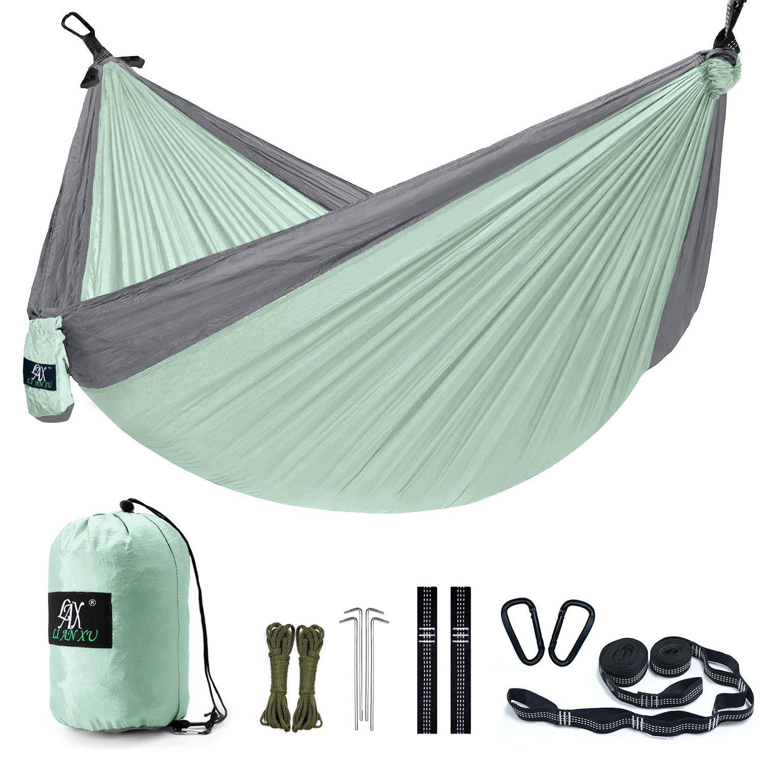 Double Camping Hammock&Straps – Multi-Functional Portable Lightweight Hammock Many Accessories – Nylon Parachute Heavy Duty Outdoor Hammock 2 Carabiners Travel, Backpacking, Camp LAX- Amazon.com