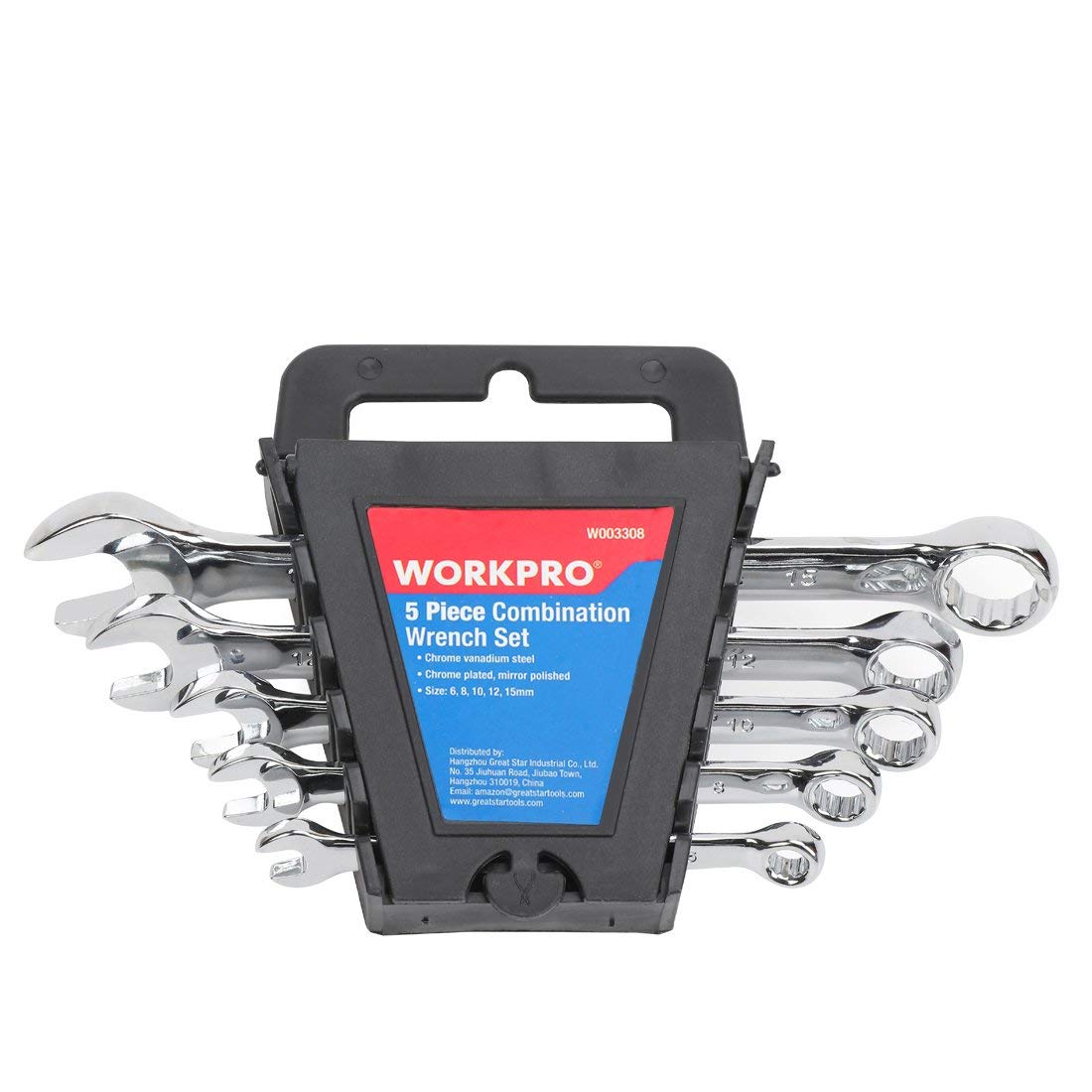 WORKPRO 5-Piece Combination Wrench Set Metric Fully Polished with Organizer Rack- Amazon.com